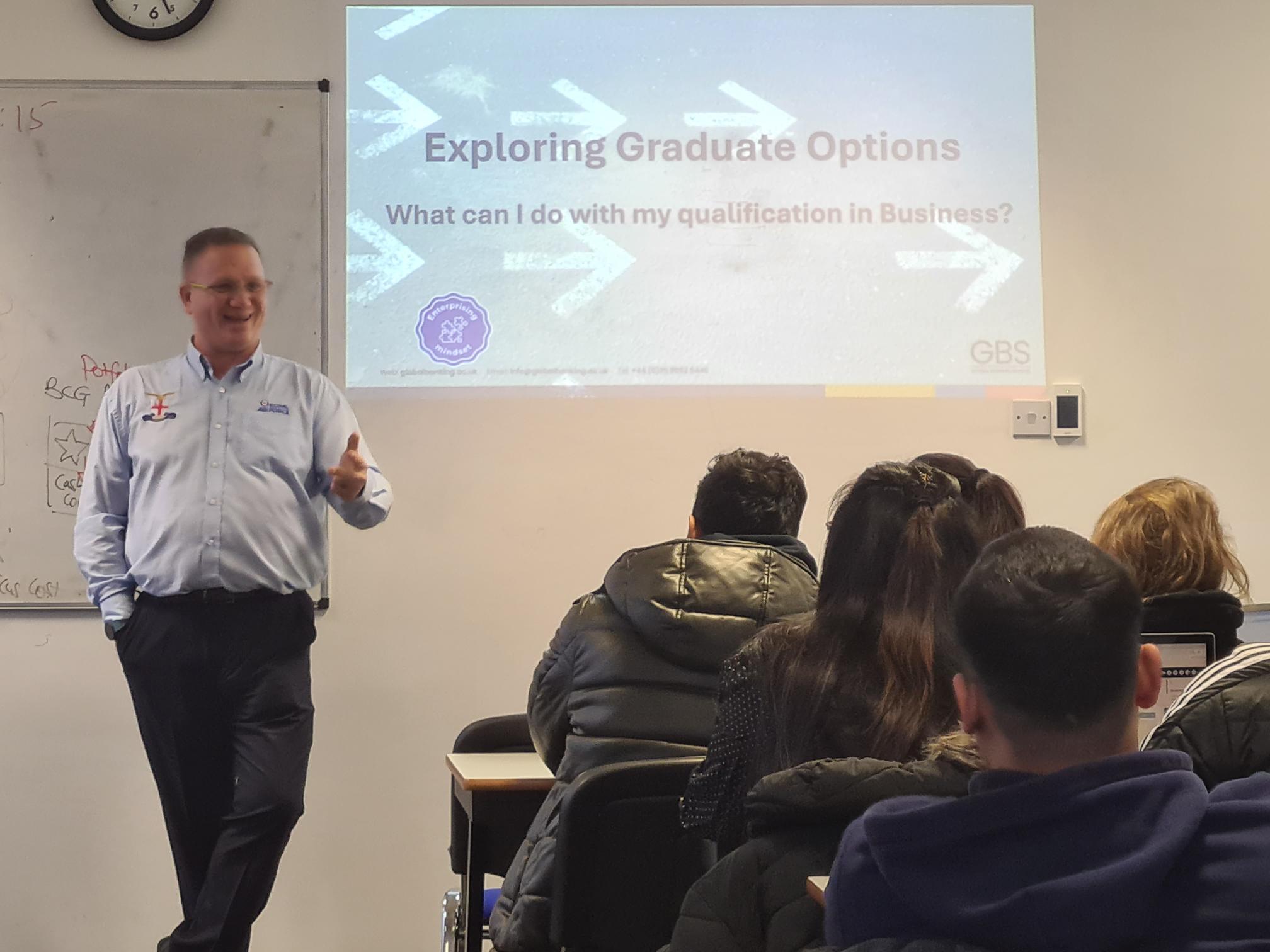 At GBS, we are committed to empowering our students with opportunities that inspire and prepare them for successful careers. As part of this mission, we recently welcomed Flight Sergeant Richard Seed from the Royal Air Force (RAF) to our Cam Road campus, where he shared his expertise with over 200 Level 6 students.