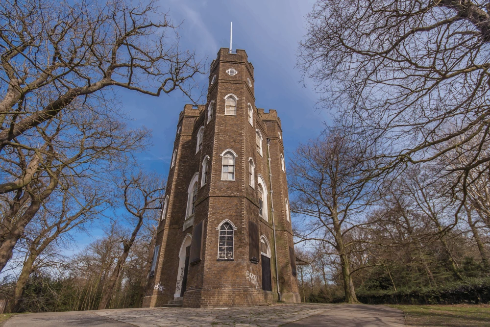 Sitting 132 meters above sea level, Severndroog Castle offers stunning views of London, the River Thames and even parts of seven nearby counties. It's surrounded by Castle Wood, which is one of the few remaining ancient woodlands in Britain, dating back thousands of years. This woodland area is very special and is protected because of its scientific importance. It's a great place for walks and bike rides, with nature trails that are part of London's Green Chain Walk and Capital Ring Walk.